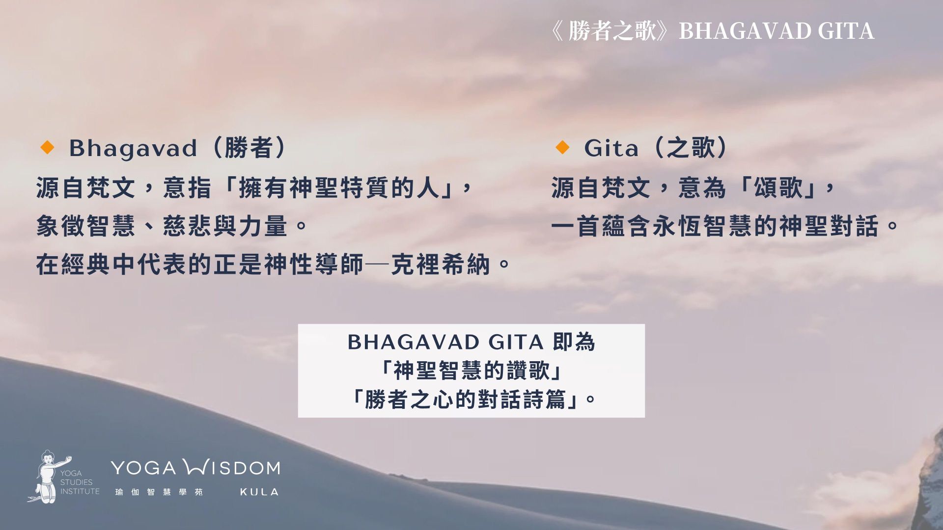 源自梵文,意為「頌歌」,一首蘊含永恆智慧的神聖對話。