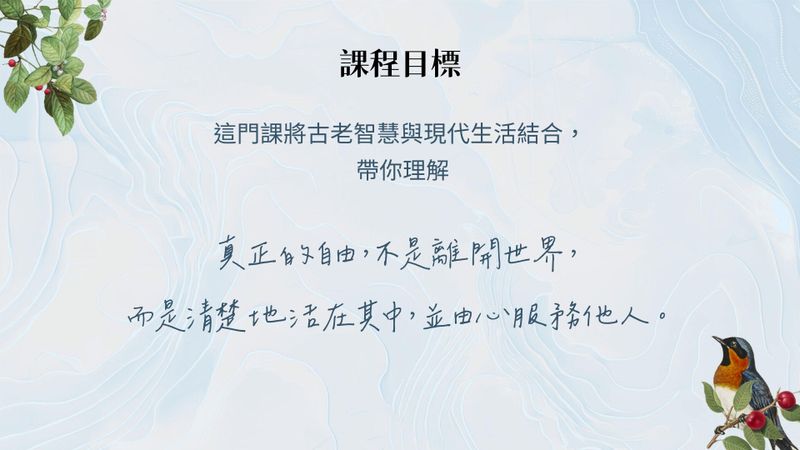 自由不是逃離世界,而是在世界中,擁有不動搖的心。