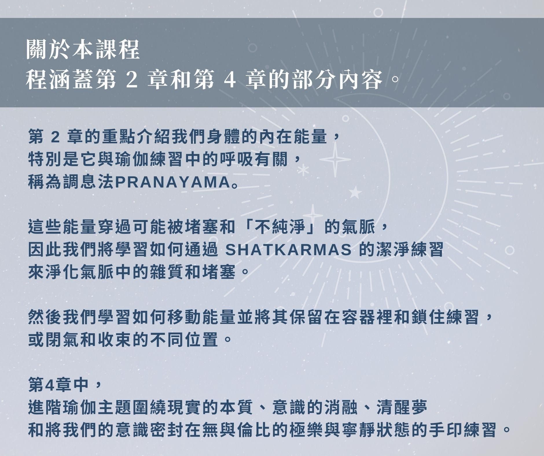 進階瑜伽主題圍繞現實的本質、意識的消融、清醒夢