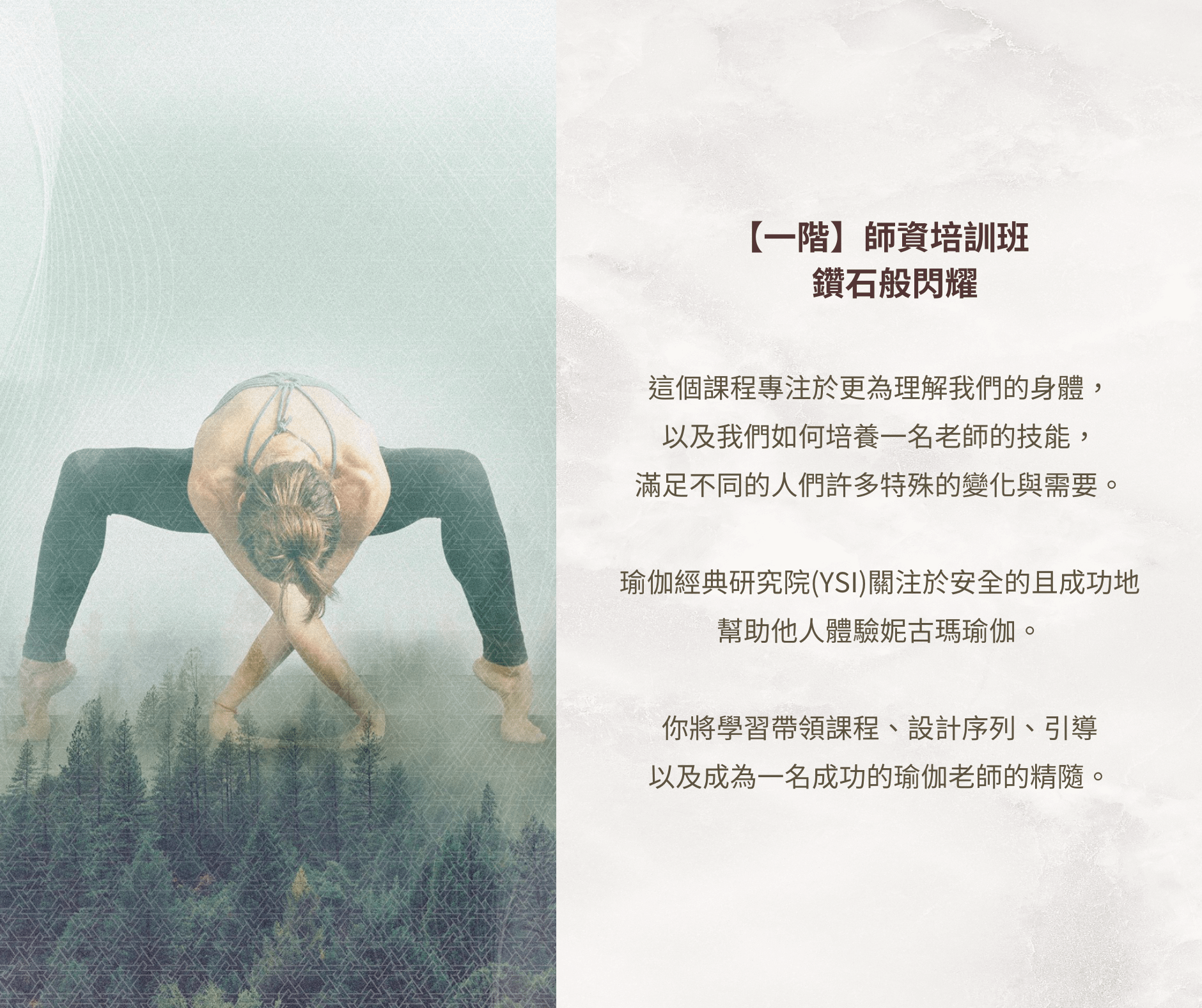 這三個模組是設計來「讓學員全然準備好成為一名專業的瑜伽老師」。