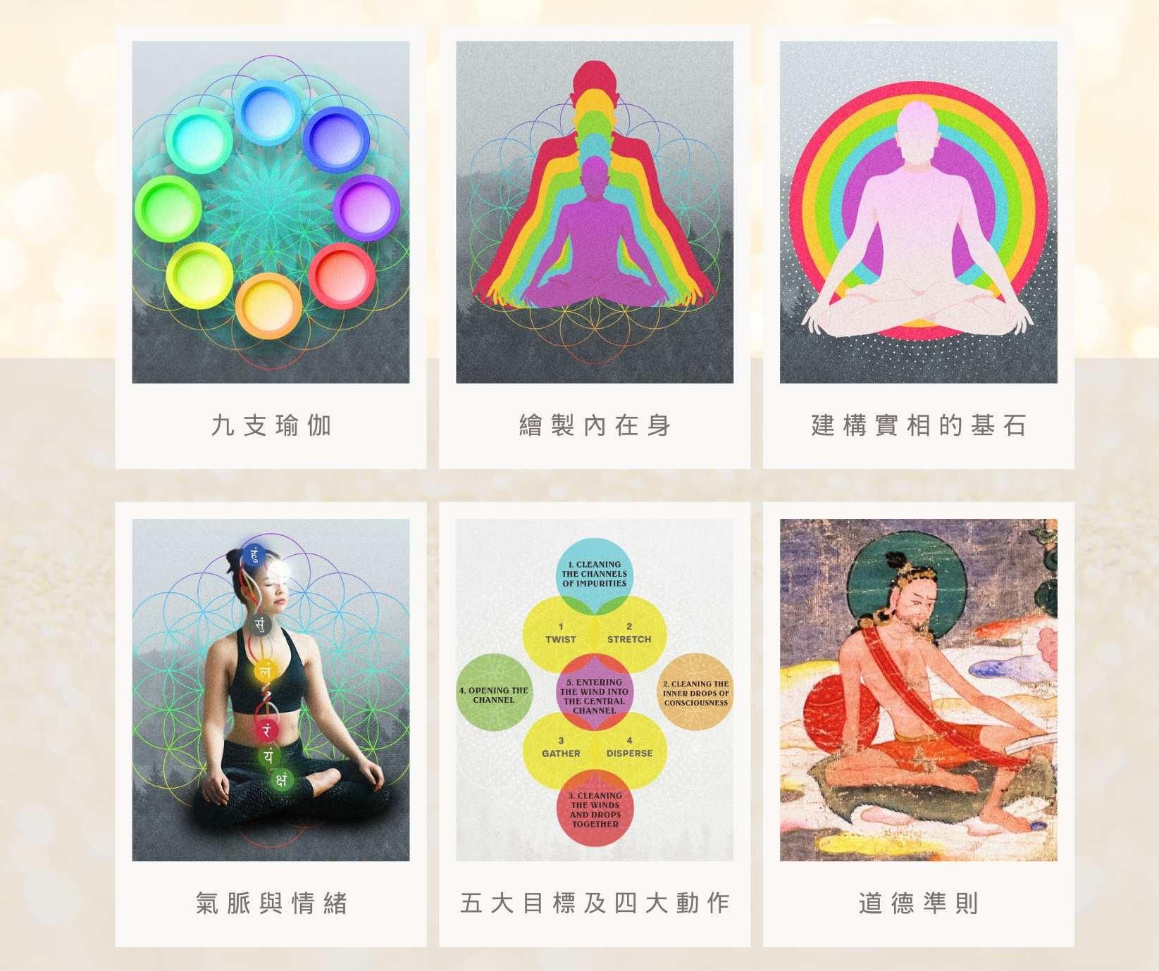 這堂課教授傳統的八支瑜伽,並加上第九支「慈悲的智慧」。