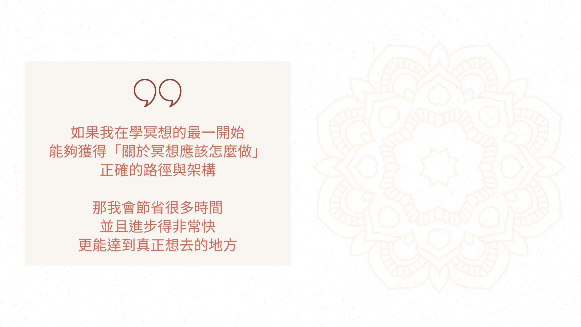 - 中高級:經驗豐富的練習者,想重新建立基礎、深入理解冥想的心理機制與進展