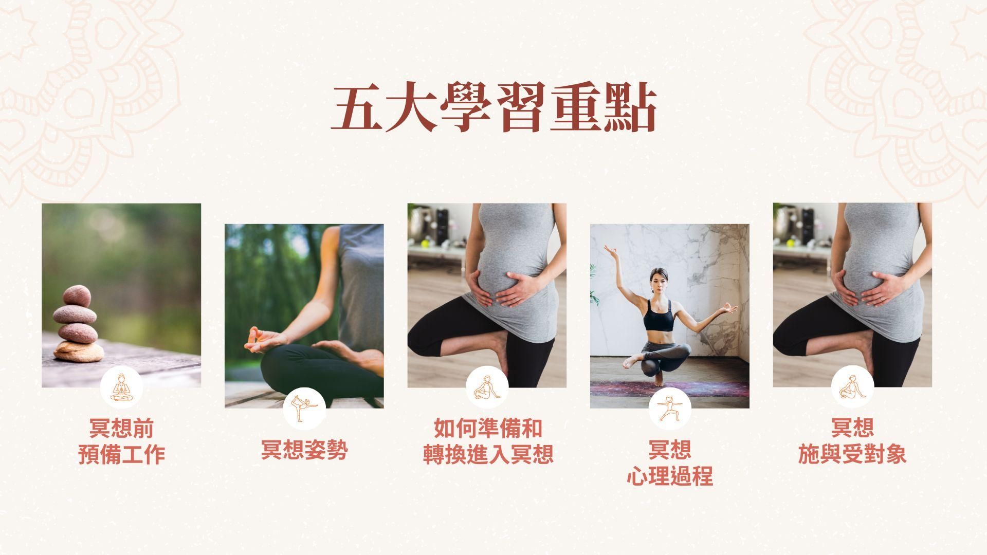 🔸學習冥想八支坐姿,結合呼吸、念頭及種子。