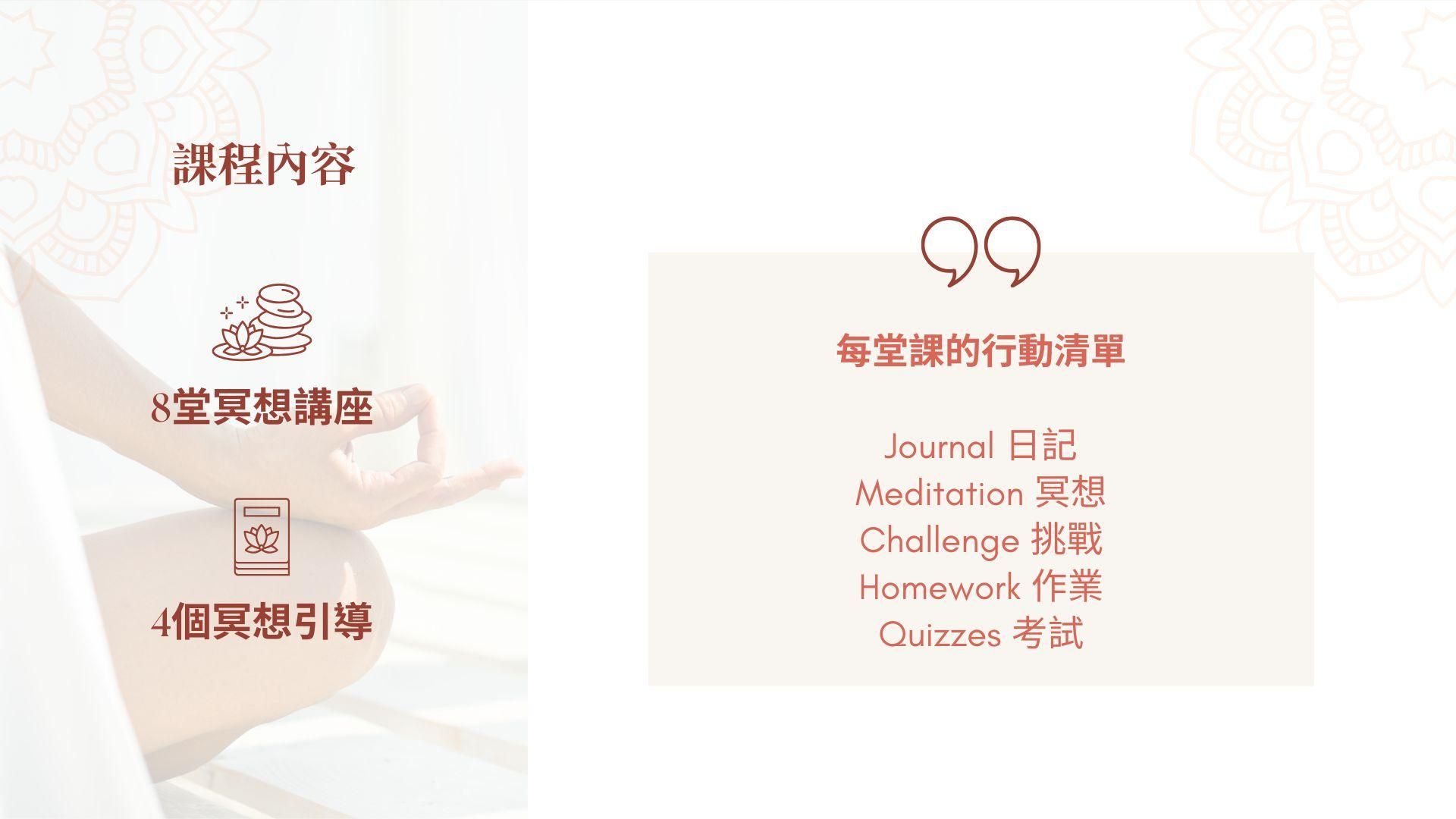 本課程是專為冥想初學者和希望強化內在修持的練習者設計。