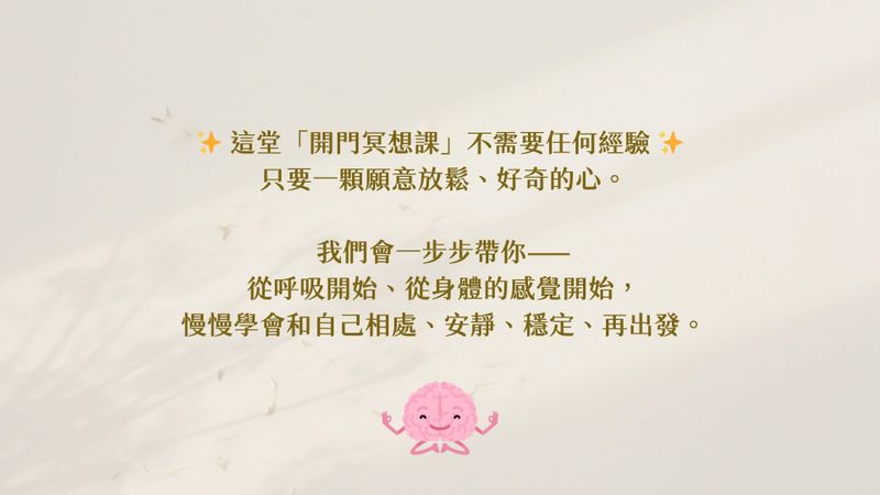 - 中高級:經驗豐富的練習者,想重新建立基礎、深入理解冥想的心理機制與進展