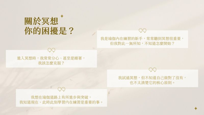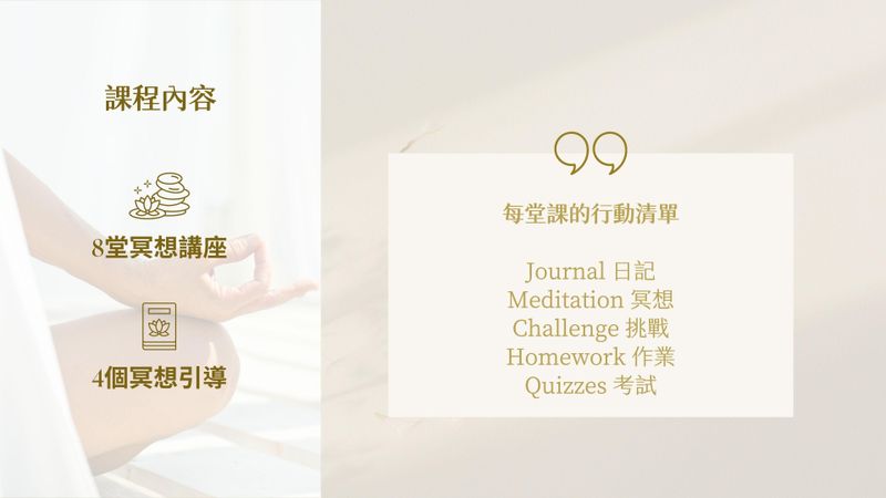 本課程是專為冥想初學者和希望強化內在修持的練習者設計。