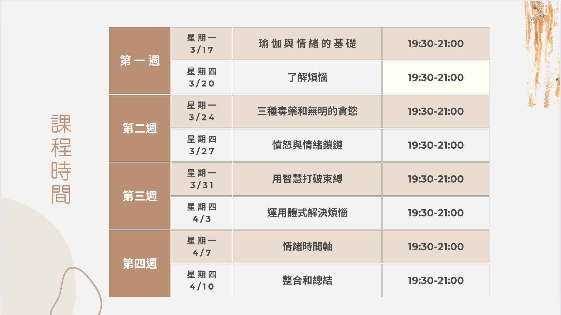 這次共有8堂課(一週2堂)