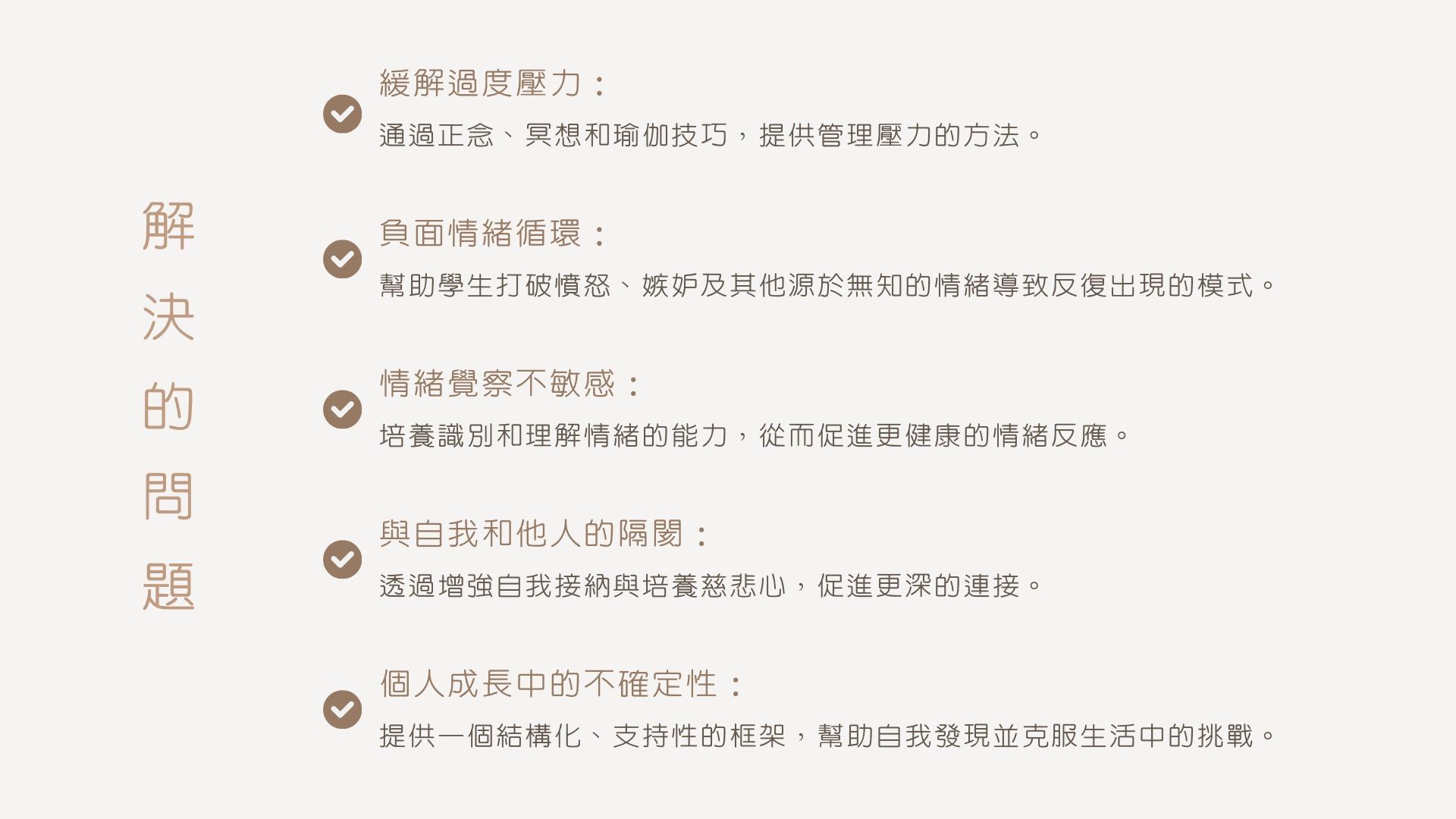 幫助學生打破憤怒、嫉妒及其他源於無知的情緒導致反復出現的模式。